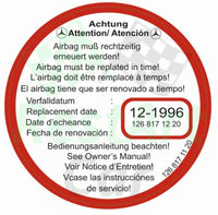 Atención Airbag debe ser reemplazado a tiempo Pegatina Mercedes-Benz