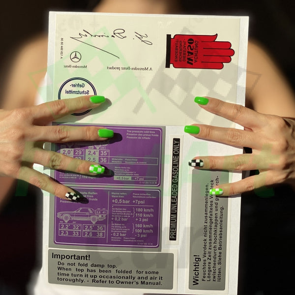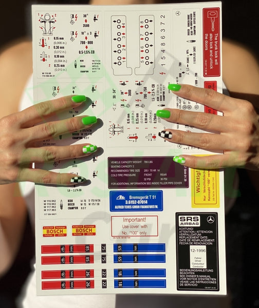 Juego completo de calcomanías premium (¡42 calcomanías!) para Mercedes-Benz R107, C107 para todas las modificaciones, motores y cajas de cambios para renovación de calidad.