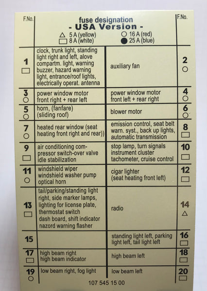 Esta es una Tarjeta de Designación de Fusibles de CALIDAD PREMIUM - producto profesional solo para renovación y restauración de ALTA CALIDAD. Envío asegurado y rastreable a cualquier país del mundo.