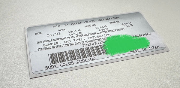 Etiqueta adhesiva de placa de código VIN para todos los modelos MAZDA