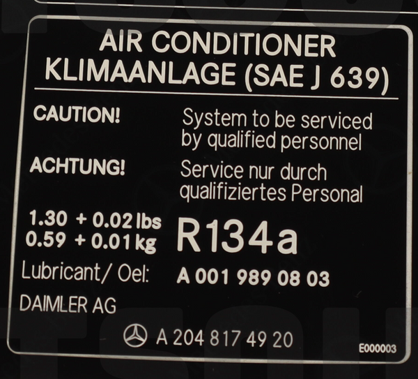 Air Conditioner Klimaanlage (SAEJ639) R134a Label Mercedes-Benz A2048174920 A0019890803