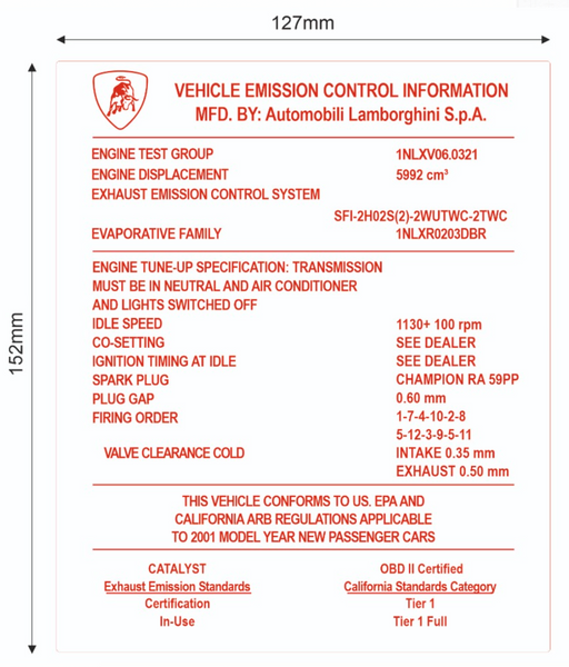 1 pcs. x Vehicle Emission Control Information 1NLXV06.0321