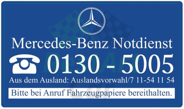 Notdienst 0130-5005 Bitte bei Anruf Fahrzeugpapiere bereithalten Sticker Mercedes-Benz